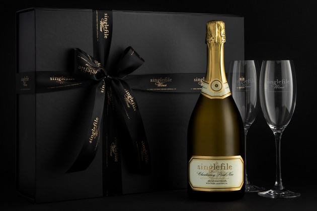 Our luxury gifting option features a bottle of Run Free by Singlefile Serendipity Cuvée with two Singlefile branded Plumm sparkling flutes in an elegant matte black box. Plumm glassware is produced using the highest quality crystal and is Australia’s first glassware brand designed for specific wine styles. Limited stock remaining.