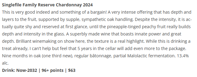 18/18.5 points, Barry Weinman, Fine Wine Club